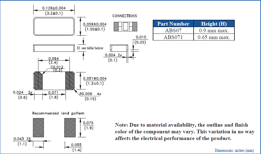 所有石英晶體振蕩器和實時時鐘模塊都以IC形式提供.Abracon晶振,貼片晶振,ABS07晶振