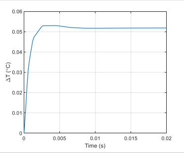 在ComsolMultiphysics®中進行的熱模擬驗證了DualMEMS模具結構的固有優勢。圖1顯示了在應用入射到DualMEMS芯片一側的對流熱通量期間TempFlat諧振器和溫度傳感器之間的溫度偏移。這種高度不對稱的熱通量為基于DualMEMS的設備提供了最糟糕的情況,因為施加的熱源更接近石英晶體諧振器之一,因此在TempFlat諧振器和溫度傳感器諧振器之間強制出現熱梯度(盡管很小)。在實際情況中,熱通量將入射到所有側面,使得兩個諧振器對稱地加熱。盡管如此,DualMEMS結構仍然顯示出對熱干擾非常有彈性。在該示例中,如圖1所示,熱通量在TempFlat和溫度傳感器諧振器之間僅產生52mK的溫度偏差,并且在小于10ms之后溫度穩定到其穩態值。然而,當受到入射在壓電石英晶體頂部的相同熱通量時,基于石英的振蕩器不那么堅固。圖2表明石英晶體和CMOS IC與溫度傳感器之間的溫度偏差要大得多,幾乎為3.5K,并且需要將近1s才能達到此值。顯然,結果表明Elite Platform DualMEMS架構的熱性能比典型的石英TCXO好幾個數量級。