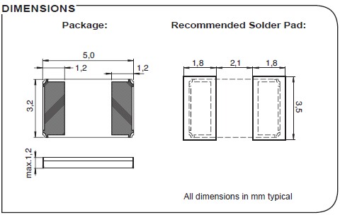 請勿在PH值范圍可能導致腐蝕或溶解進口晶振或包裝材料的環境下使用或儲藏這些產品.CC2A-T1AH晶振,兩腳SMD無源晶體,5032表晶。