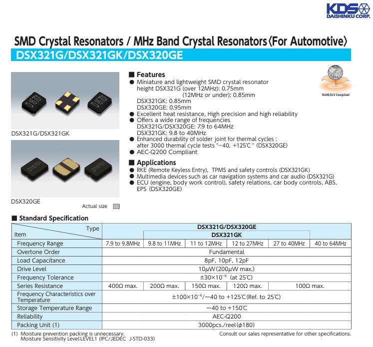 這款晶振的優勢遠不止于此,優異的耐熱性、高精度和高可靠性是它的核心底氣.它提供廣泛的頻率范圍,搭配同系列的DSX320GE、DSX321GK型號,覆蓋7.9至64MHz的頻率需求,滿足不同車載系統的使用要求.其中DSX320GESMD晶振型號更經過3000次熱循環測試,焊點耐久性極強,能輕松應對車輛行駛中頻繁的溫度變化,始終保持穩定運行.