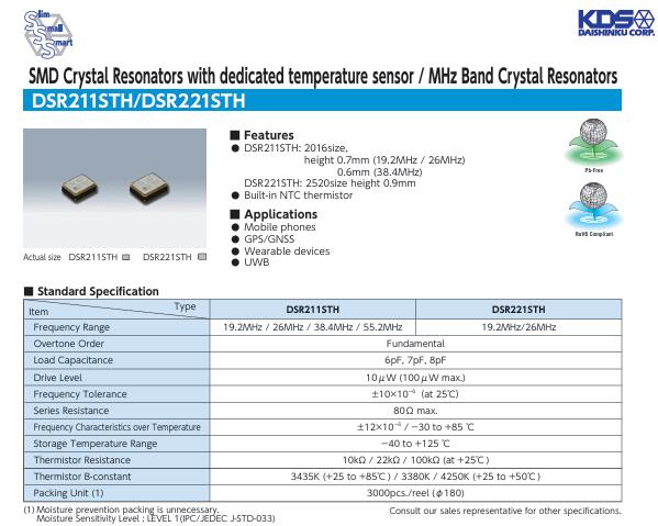 日本KDS無源晶振,DSR221STH 可穿戴設備進口晶振智能手機晶振