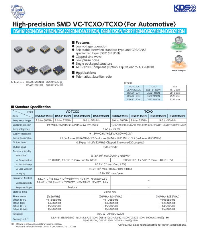 | KDS晶振 | 1XTW26000MAA | DSB321SDN | 3225 | 26.000MHZ |