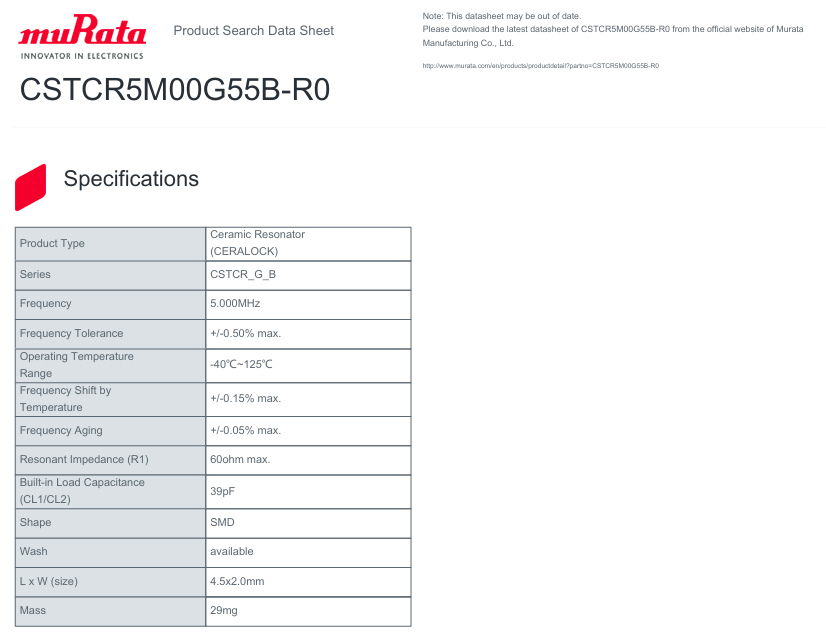 CSTCR5M00G55B-R0陶瓷晶振,日本村田muRata晶振,4520 5M車規(guī)晶振