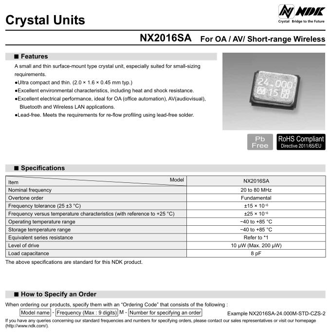| 品牌 | 日本NDK晶振 |