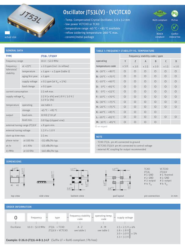 更多>>0 24.0-JT53L-Y-K-3.3-LF JAUCH溫補晶振5032 24M TCXO