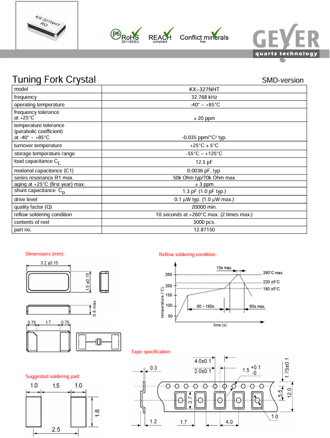 | 12.8718 | GEYER | Crystal 32.7680kHz 9pF SMD | KX-327NHF | ±20ppm | -40°C ~ 125°C | 2 | 3215 | Geyer |