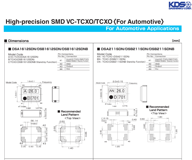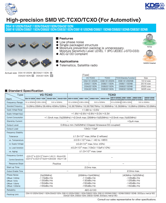 更多>>1XXD16368MGA DSB211SDN 16.368M KDS溫補TCXO晶振