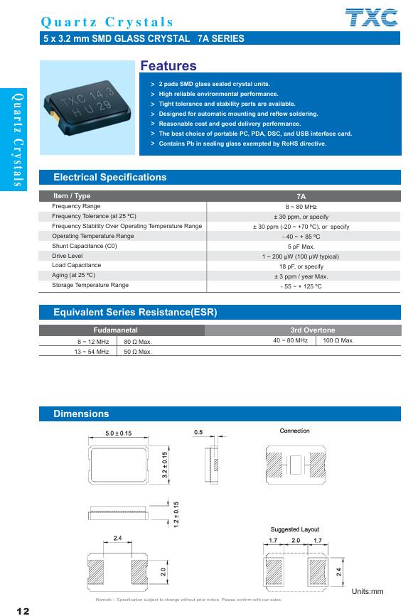更多>>7A08000016兩腳5032 8M 8PF TXC陶瓷晶振