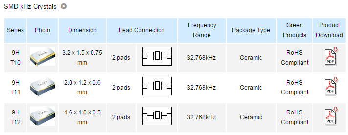2 pads SMD glass sealed crystal units.