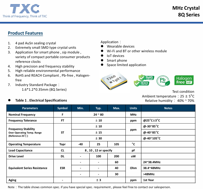 當智能手機流暢運行、可穿戴設備精準監測、物聯網設備互聯互通時,很少有人會留意那顆藏于機身深處的“時間心臟”臺灣晶技晶振.臺灣TXC晶技推出的8Q26000008晶振,以1.6*1.2*0.35mm的方寸之軀,承載著高精度頻率控制的核心使命,堪稱小型化科技浪潮中的匠心典范.