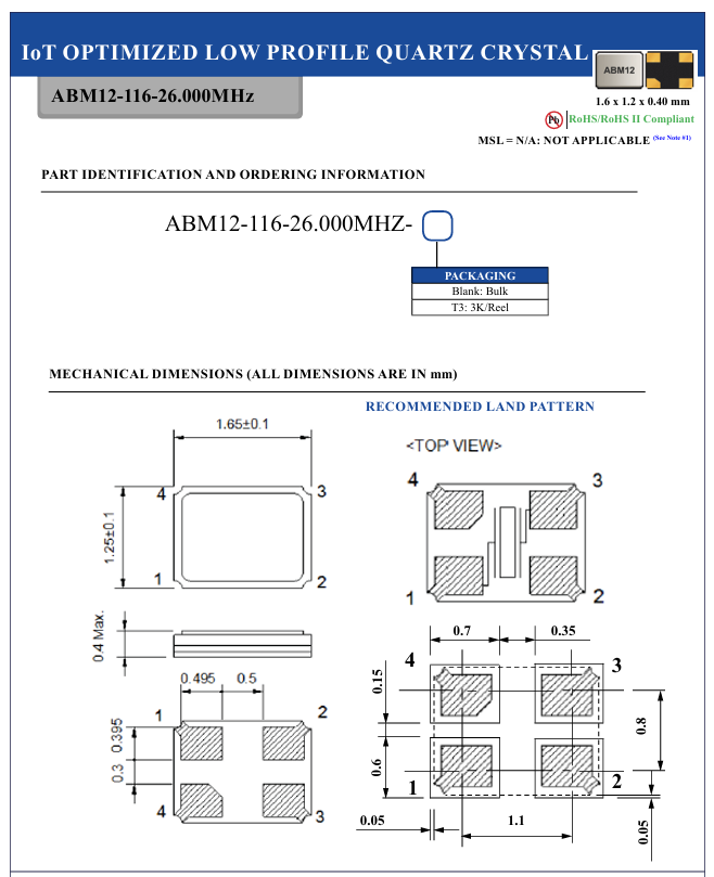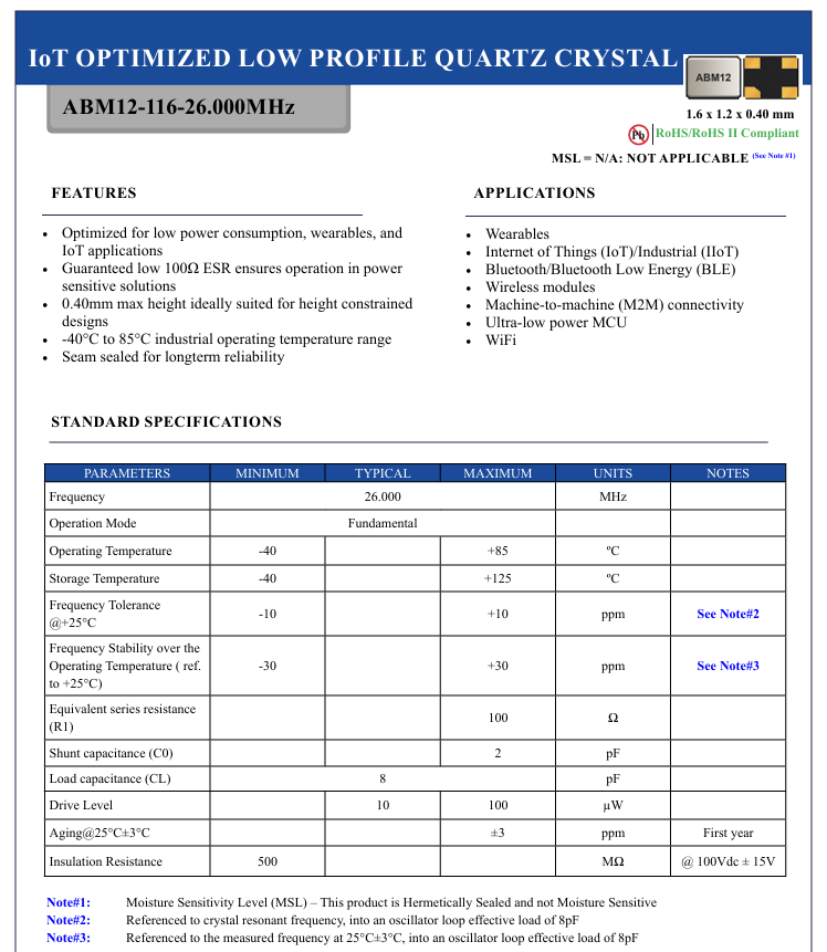 晶振撬動智能新時代當可穿戴設備精準監測健康數據,當物聯網設備實現遠程智能控制,當藍牙模塊無縫傳輸信息,這些智能場景的背后,都離不開一個核心元器件——晶振.美國艾博康(Abracon晶振)推出的ABM12-116-26.000MHZ-T3晶振,以其卓越性能成為低功耗智能設備的“心臟”,彰顯著方寸之間的科技力量.