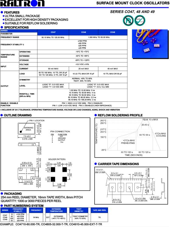 | CO48 Series 5 MHz 7 x 5 mm 5 V ±100 ppm Surface Mount Clock Oscillator | ||||||||