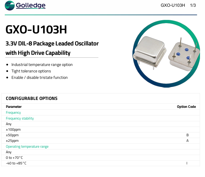 | MP07693 | Golledge | 50.0 MHz GXO-7506L/A Ultra-Low J | GXO-7506L | 3.3V | ±50ppm | -40°C ~ 85°C | 4 | 7050 |