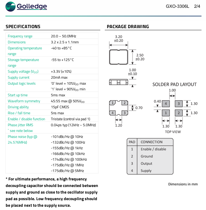 | MP10076 | Golledge | 49.1520MHz GXO-3306L/A Ultra-Lo | GXO-3306 | 3.3V | ±25ppm | -40°C ~ 85°C | 4 | 3225 |