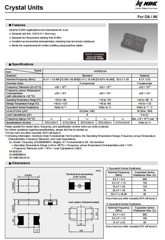 更多>>NDK緊湊型無(wú)源晶體NX5032GA-16.000M-STD-CSK-4專享于理想OA和汽車(chē)應(yīng)用