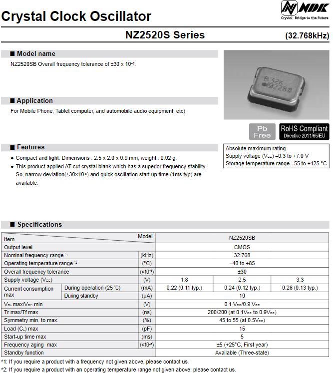 NDK優(yōu)化了時鐘振蕩器性能非常適合用于汽車音響設備NZ2520SB-32.768KHZ-NSA3535C