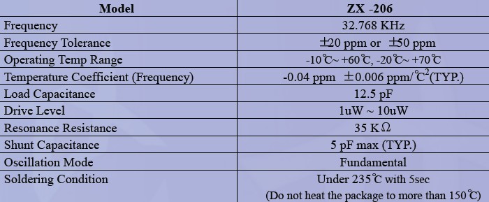 超小型,質地輕的音叉型晶體諧振器,具備優良的耐熱性,耐環境特性,在辦公自動化,家電領域,移動通信領域可發揮優良的電氣特性,符合無鉛標準.