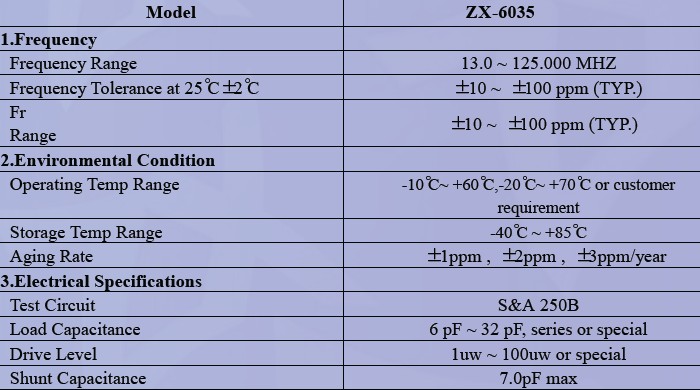 石英晶振,ZX-6035晶體,石英晶體諧振器