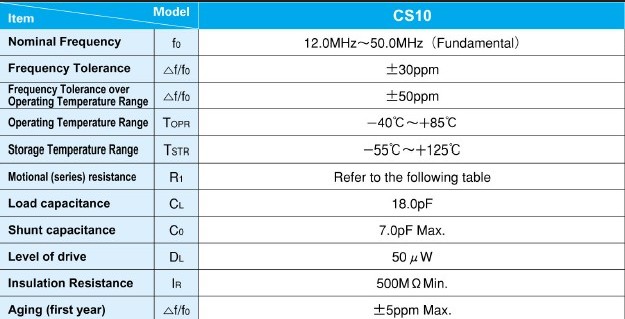 晶振規格: