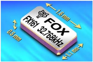 FOX推出新型小體積SMD晶體適用于便攜式產品應用,1.6x1.1x0.5mm封裝,命名為FX161晶振,頻率32.768K,雖然尺寸較小,但新型FX161晶體沿用了老型號產品的特性,具有同樣高品質參數,是FOX音叉晶體型號最有效的音叉晶體諧振器之一.