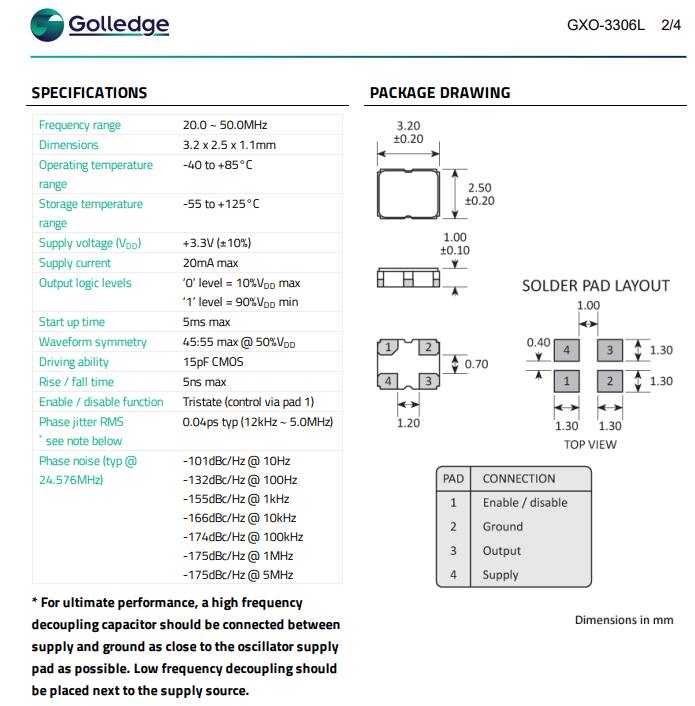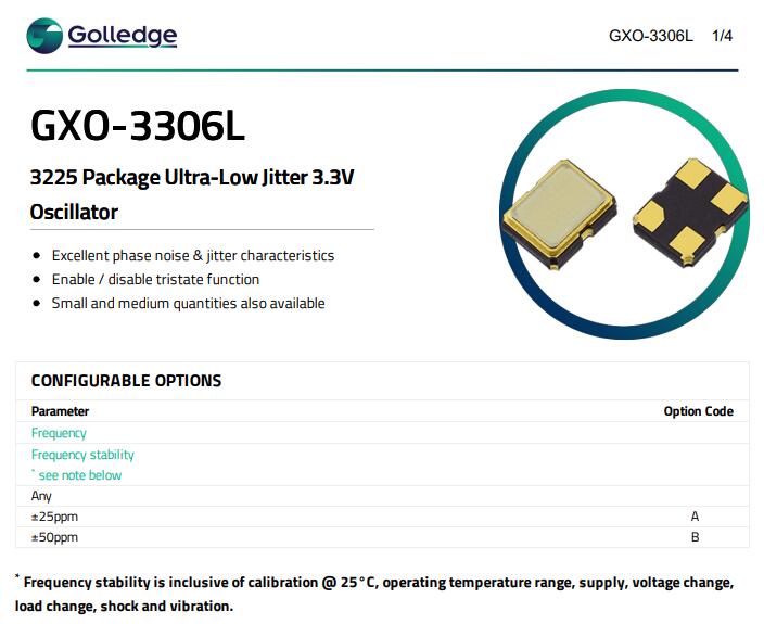 Golledge Electronics提供GXO-3306系列超低抖動振蕩器.這些振蕩器旨在提供卓越的信號完整性,確保在苛刻的環境中提供準確可靠的性能.